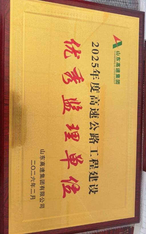 當(dāng)前位置:網(wǎng)站首頁>>監(jiān)理咨詢| 監(jiān)理公司榮獲山東高速集團(tuán)“2025年度高速公路工程建設(shè)優(yōu)秀監(jiān)理單位”稱號 |